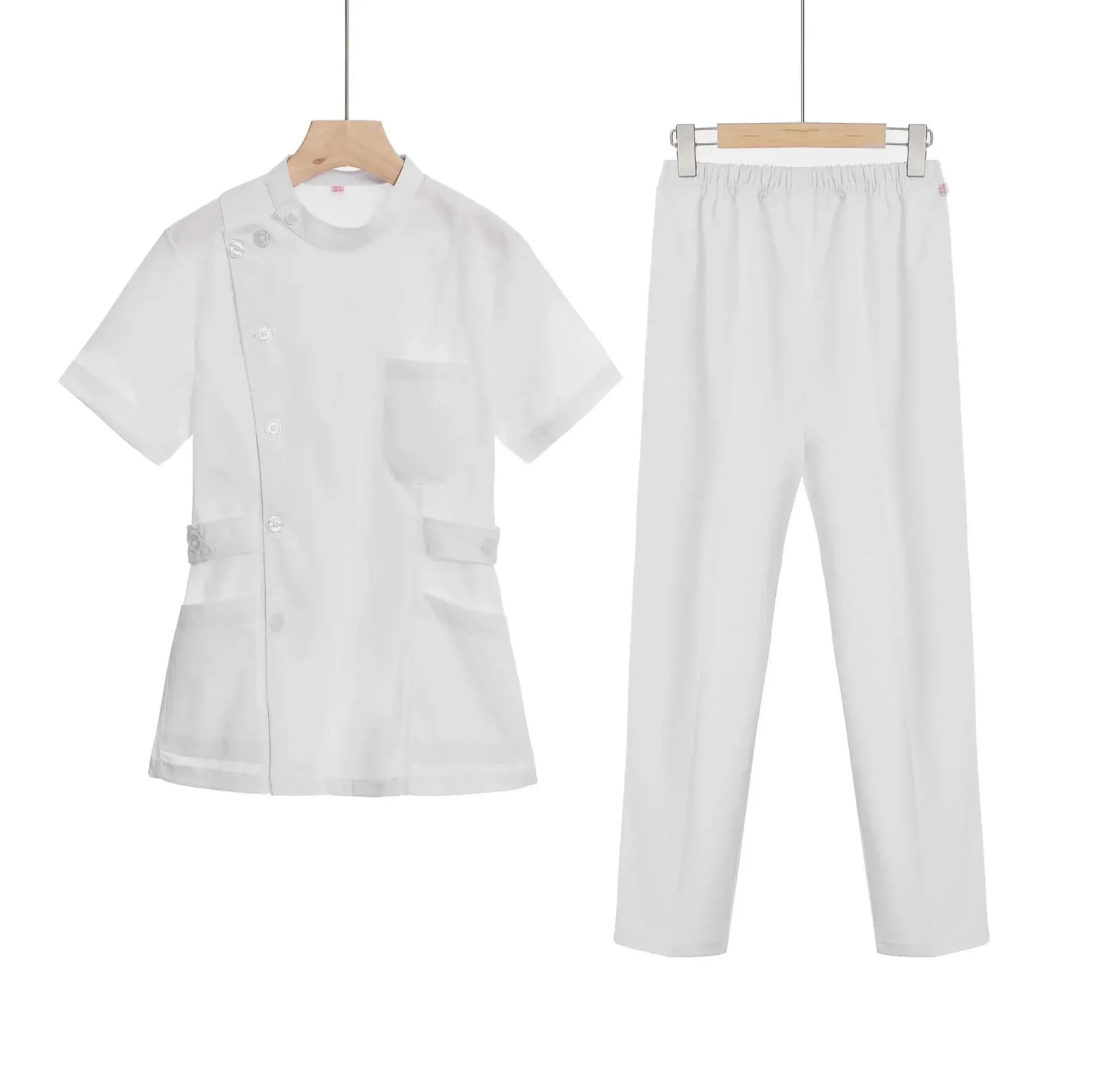 Con mangas cortas o completas a elección, cintura ajustable para un fit personalizado que resalta tu silueta sin restricciones, y tallas inclusivas S a 2XL, este set resuelve el dolor de uniformes genéricos que no adaptan o carecen de estilo –convirtiéndose en el favorito de miles de mujeres que proyectan empatía y confianza, fusionando funcionalidad médica con un blush rosado que genera calidez en pacientes y colegas.