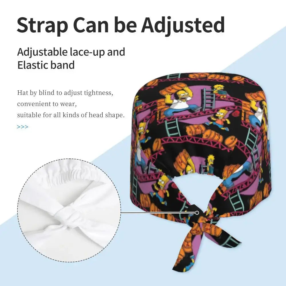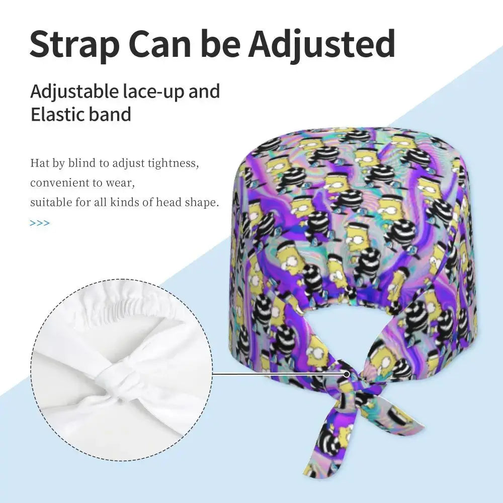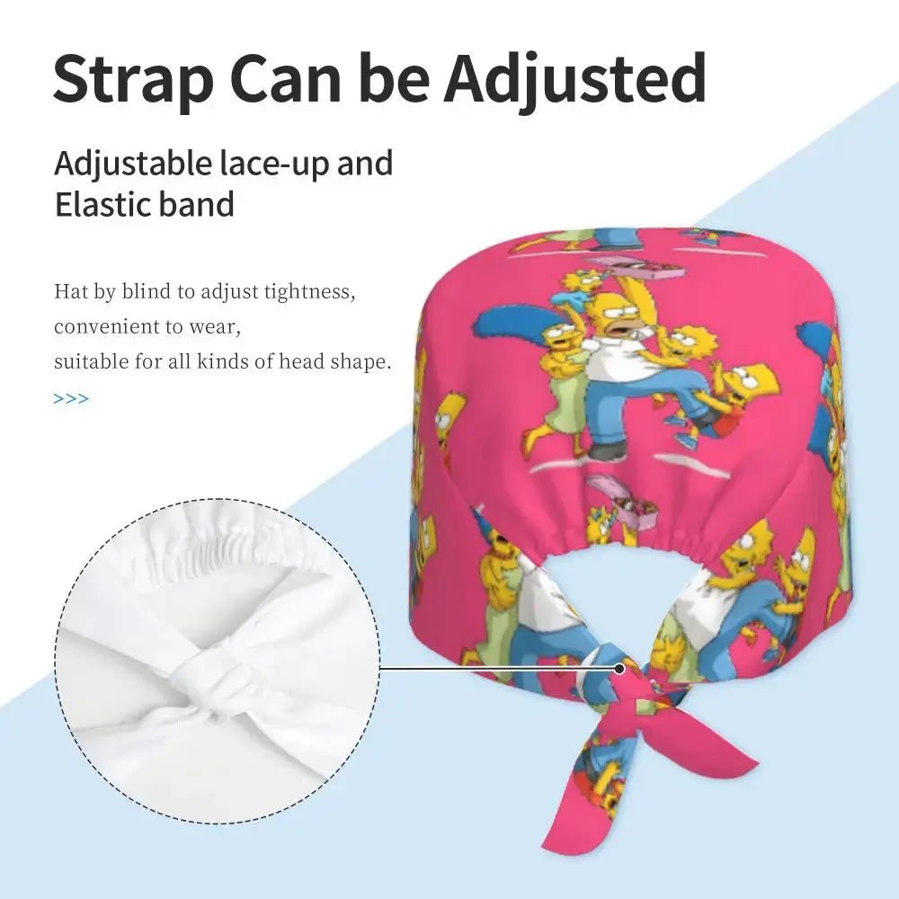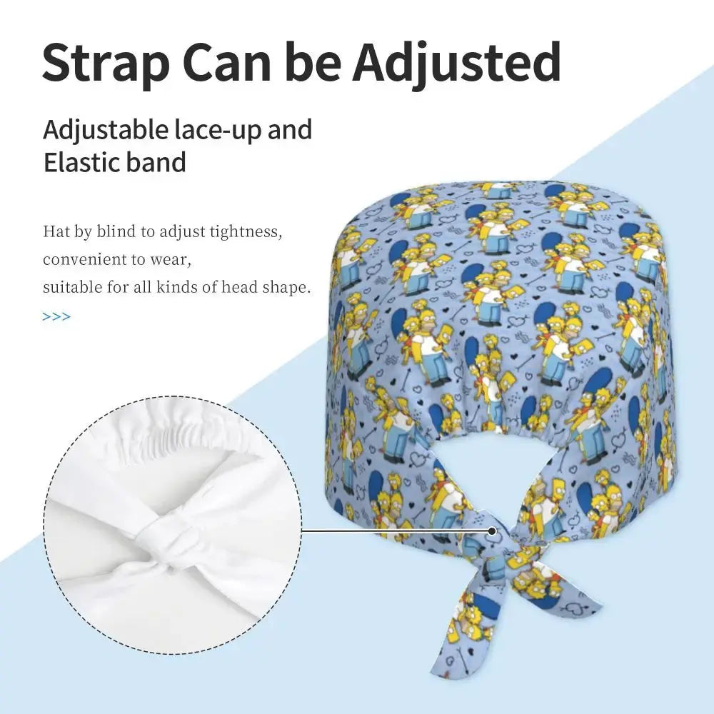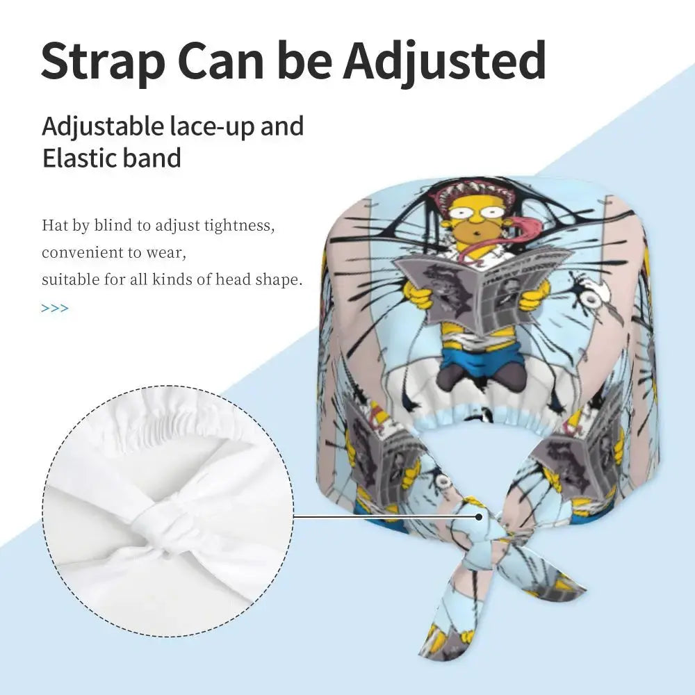Gorro Quirúrgico Ajustable "BrainBlast Simpsons" – Personalizado Respirable Unisex para Enfermeras, Médicos y Cirujanas con Toque Divertido