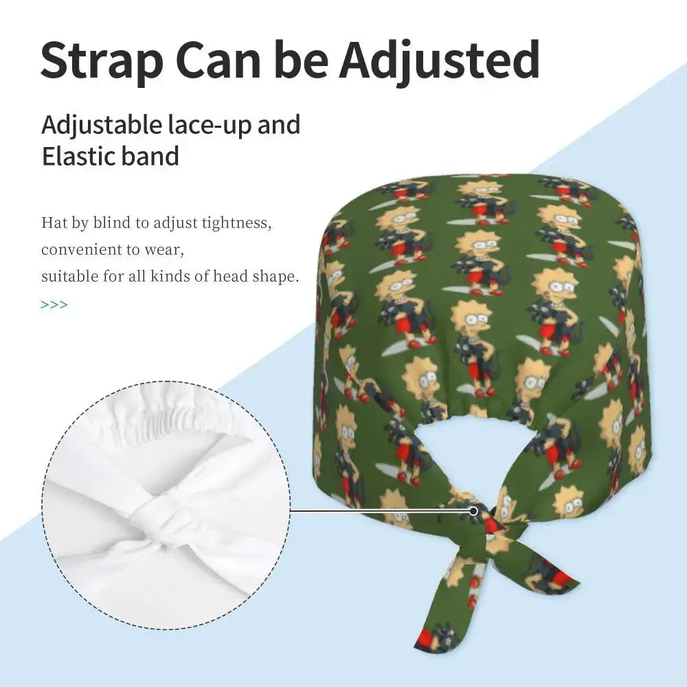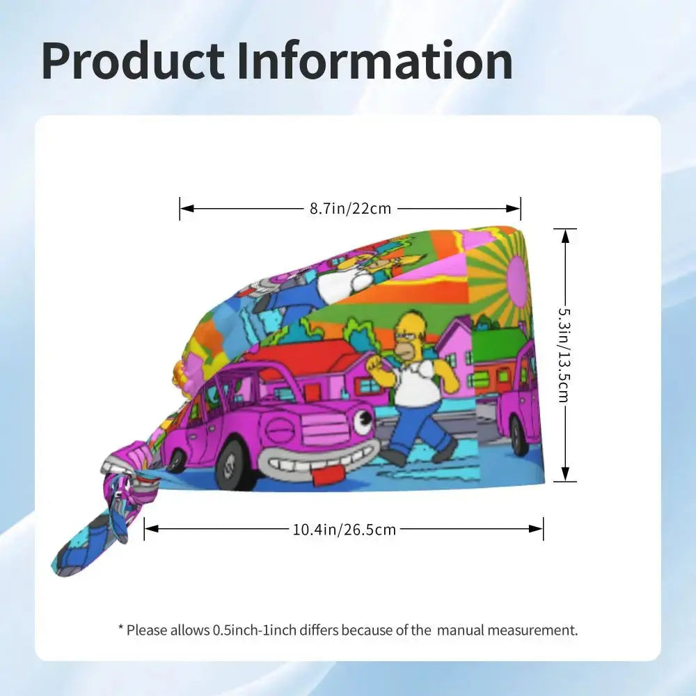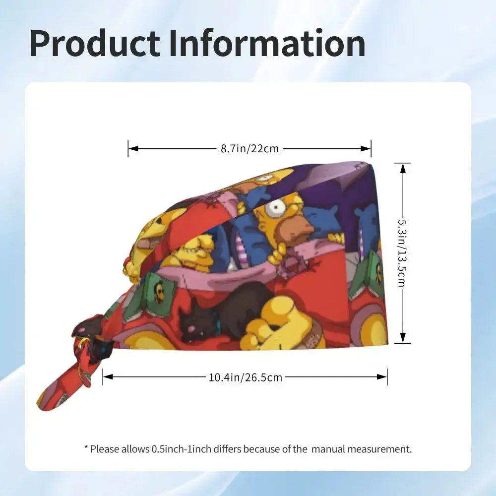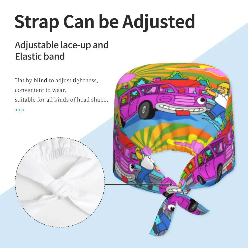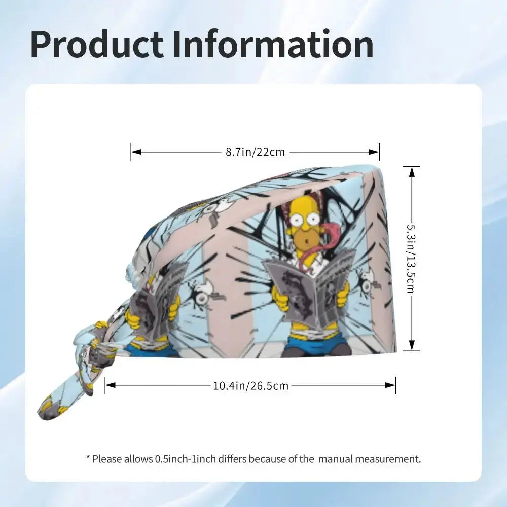 Gorro Quirúrgico Ajustable "BrainBlast Simpsons" – Personalizado Respirable Unisex para Enfermeras, Médicos y Cirujanas con Toque Divertido