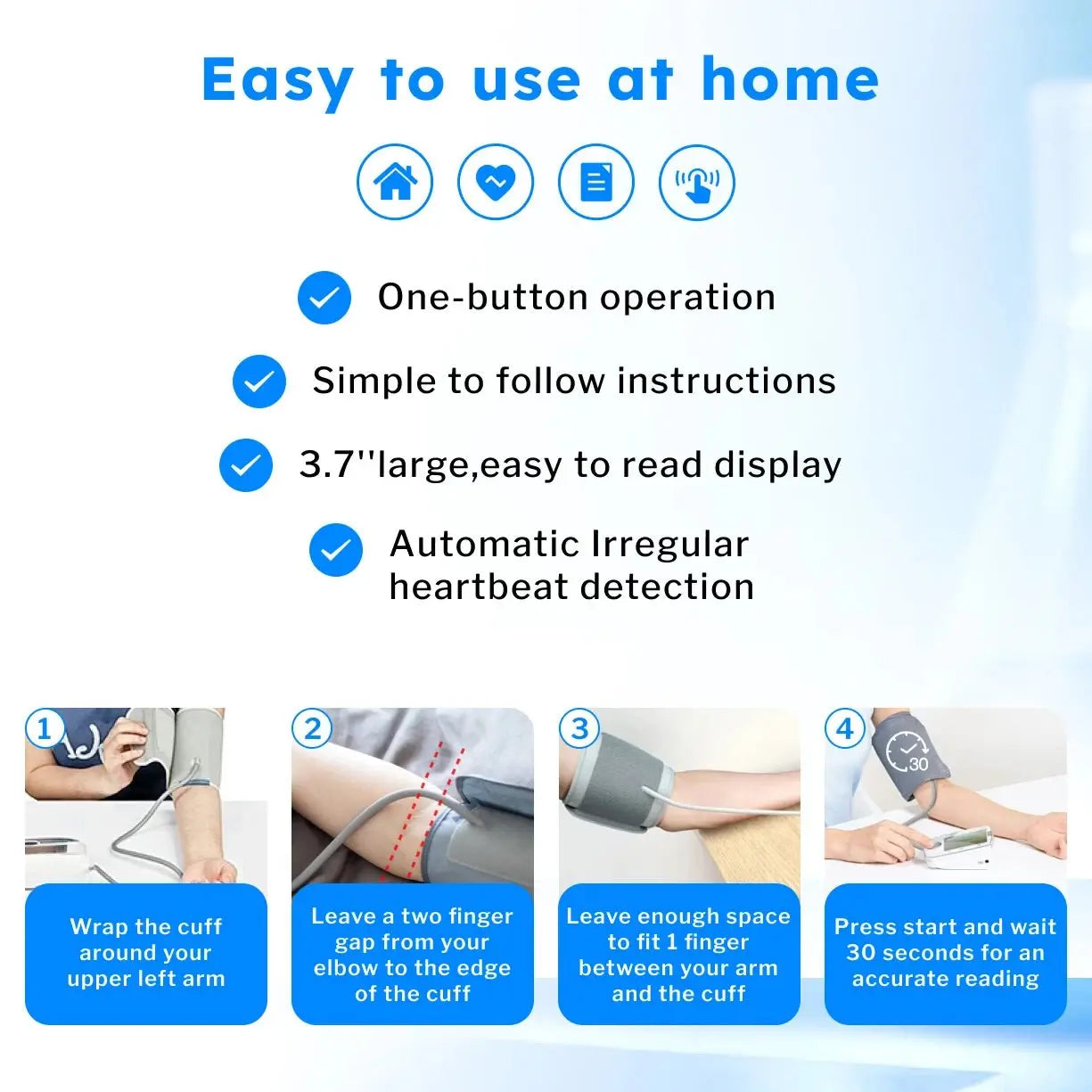 The large LED display with clear and oversized numbers, makes it easy to read your real-time blood pressure and pulse rate. High precision chip of large LED touch screen provides clinically accurate readings, giving the most accurate systolic, diastolic pressure and pulse rate data by one touchable button and easy to read the backlist screen with multi-colored LED indicator lights.